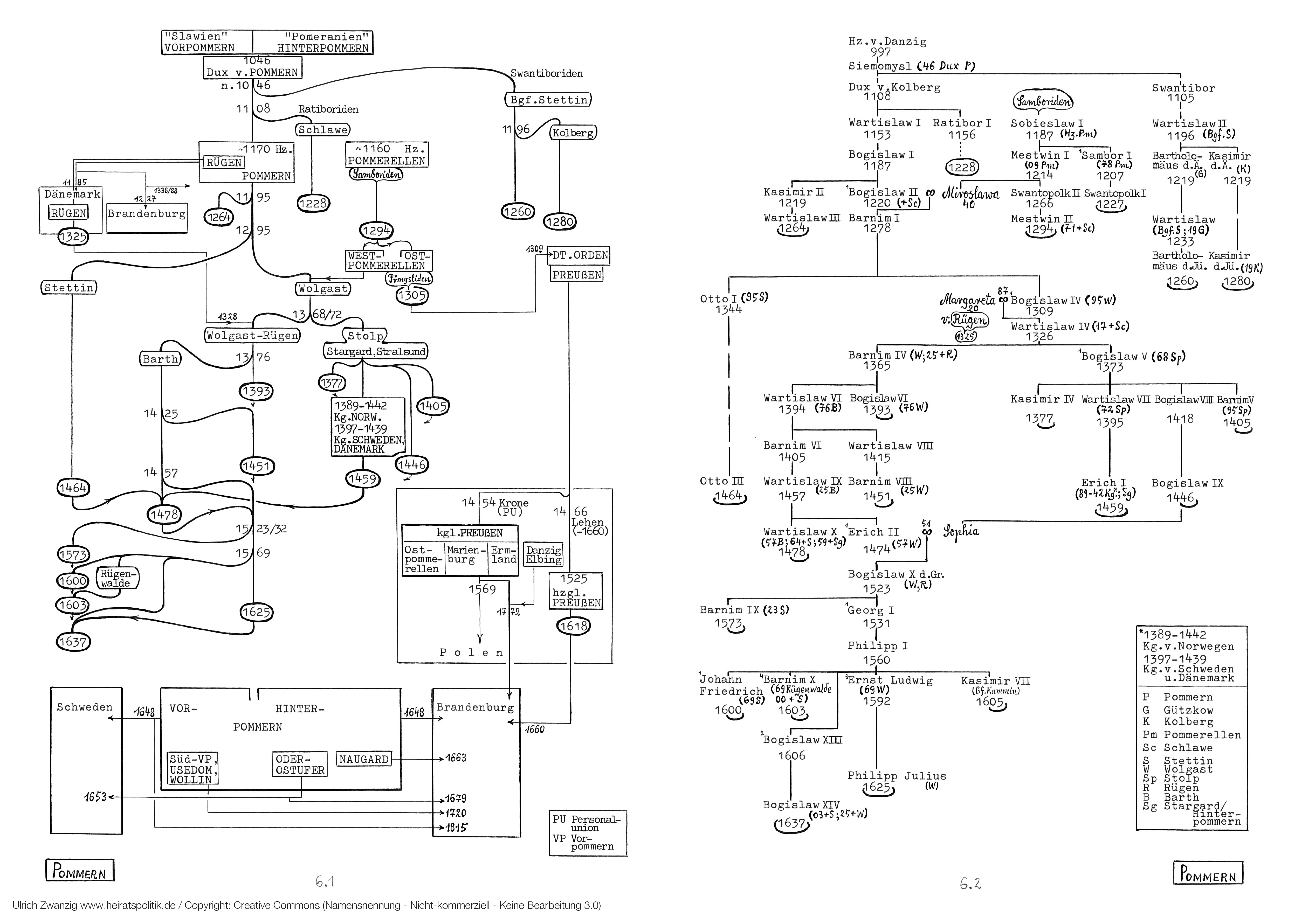 Unter dynastischem Aspekt stellte das pommersche Hzm. den Gegenpol zum schlesischen dar. Pommern war von mächtigen Nachbarn umgeben und von Beginn an zur Einigkeit und Selbständigkeit verurteilt. Darum erwies sich seine Identifikation mit dem eingesessenen Geschlecht der Greifen als so intensiv wie bei keiner der anderen 18 hier behandelten Territorialdynastien.
